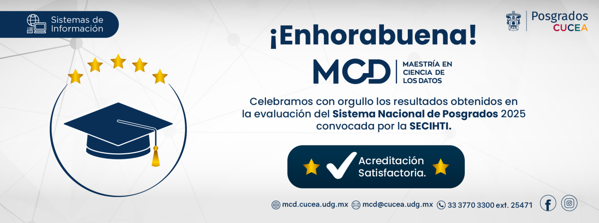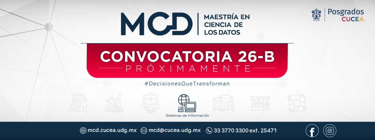 La MCD, CUCEA, es un programa estructurado para el ingreso de profesionistas en diferentes disciplinas con conocimientos sólidos en la extracción, gestión y analítica de datos que coadyuven a la solución de problemáticas de diferente índole. Descargar convocatoria